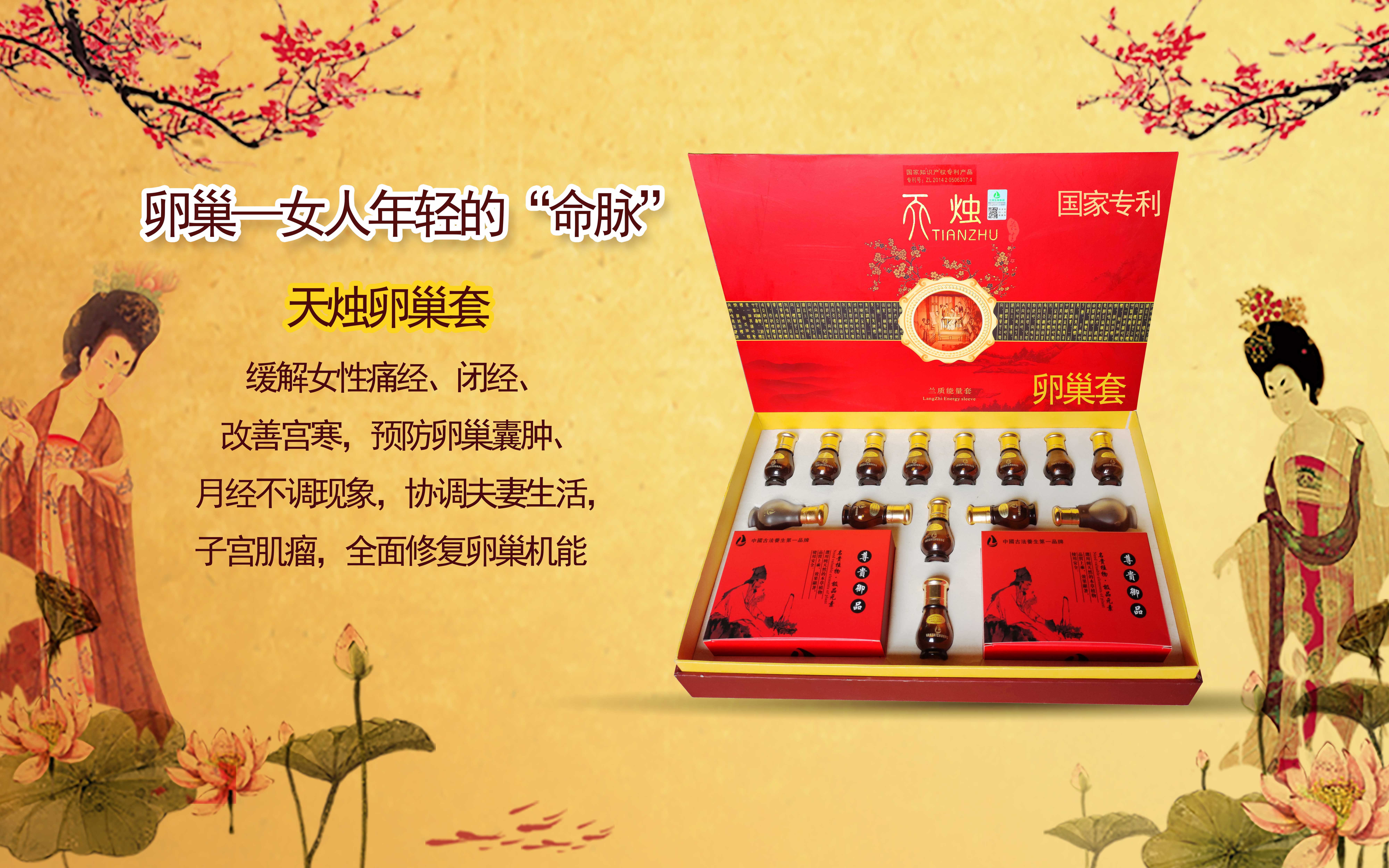 天烛卵巢套组集草本中药精油及天烛的国家知识产权专利产品相结合,可以缓解女性痛经、闭经、月经不调现象,协调夫妻生活,改善宫寒,预防卵巢囊肿、子宫肌瘤,全面修复卵巢机能。